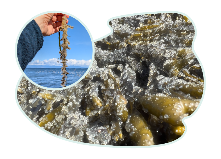 Herring eggs are EXTREMELY sticky. Take a walk along the shore during the spawn, and you’ll likely find all manner of seaweed, kelp and plant material jewel-encrusted with eggs. Each female can carry up to 12,000 eggs.